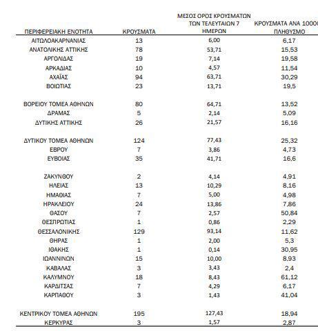 Κεντρικός Τομέα Αθηνών: 195 κρούσματα