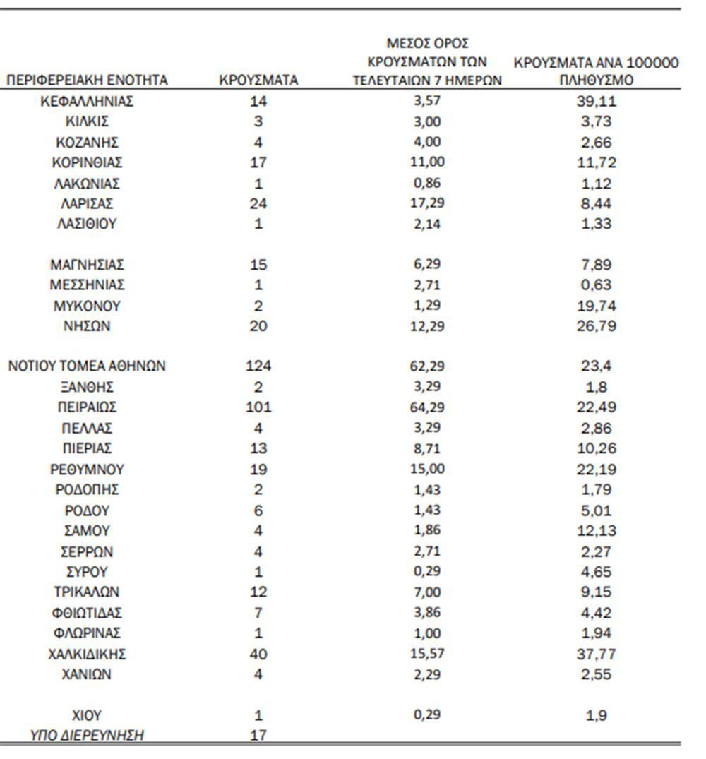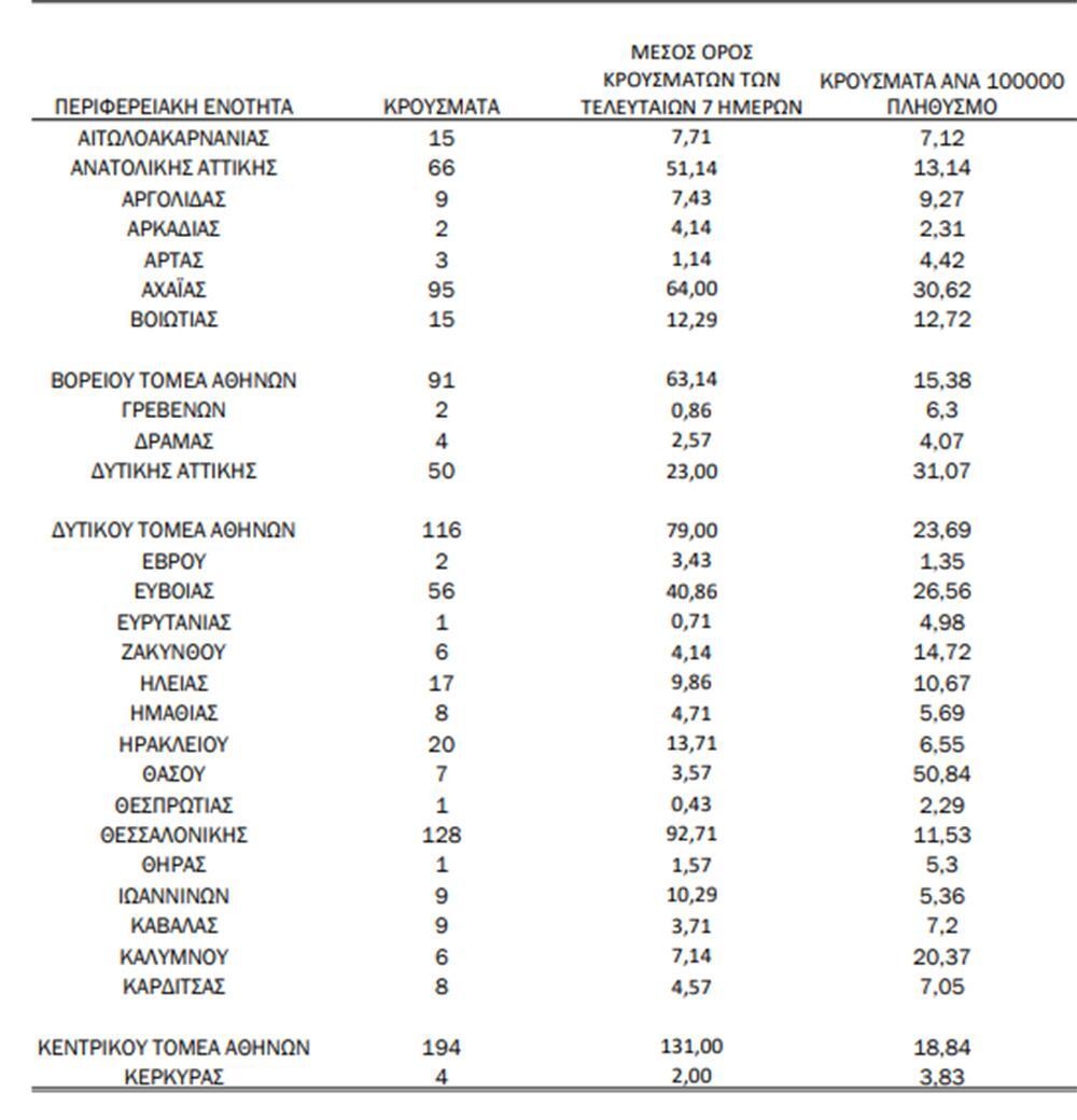 Η κατανομή των κρουσμάτων ανά την επικράτεια:
