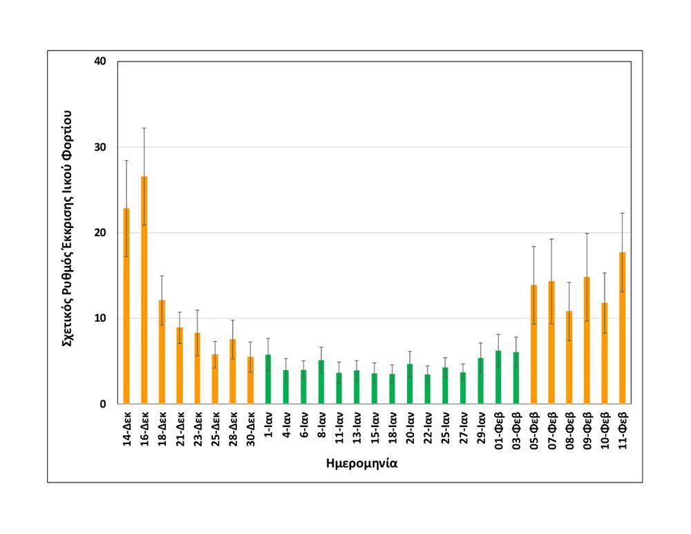 Έτσι, η ημερήσια διακύμανση του ιικού φορτίου της τελευταίας εβδομάδας, μετά τον απαραίτητο περιβαλλοντικό εξορθολογισμό των μετρήσεων, επιβεβαιώνει το νέο επίπεδο επιδημιολογικού συναγερμού στην πόλη από τις αρχές του Φεβρουαρίου, αλλά μέχρι τώρα καταδεικνύει μόνο μικρή αύξηση.
