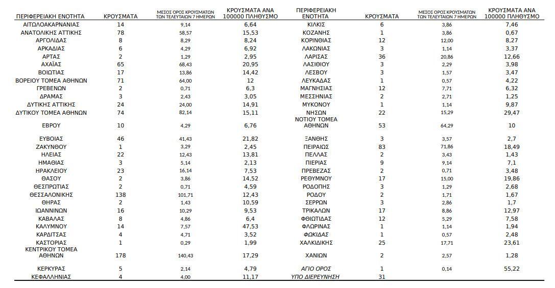 Στην Αχαΐα που βρίσκεται πλέον σε νέο καθεστώς lockdown καταγράφηκαν 65 νέα κρούσματα και ακόμα 46 στην Εύβοια.