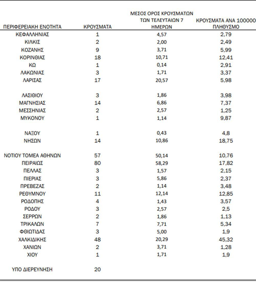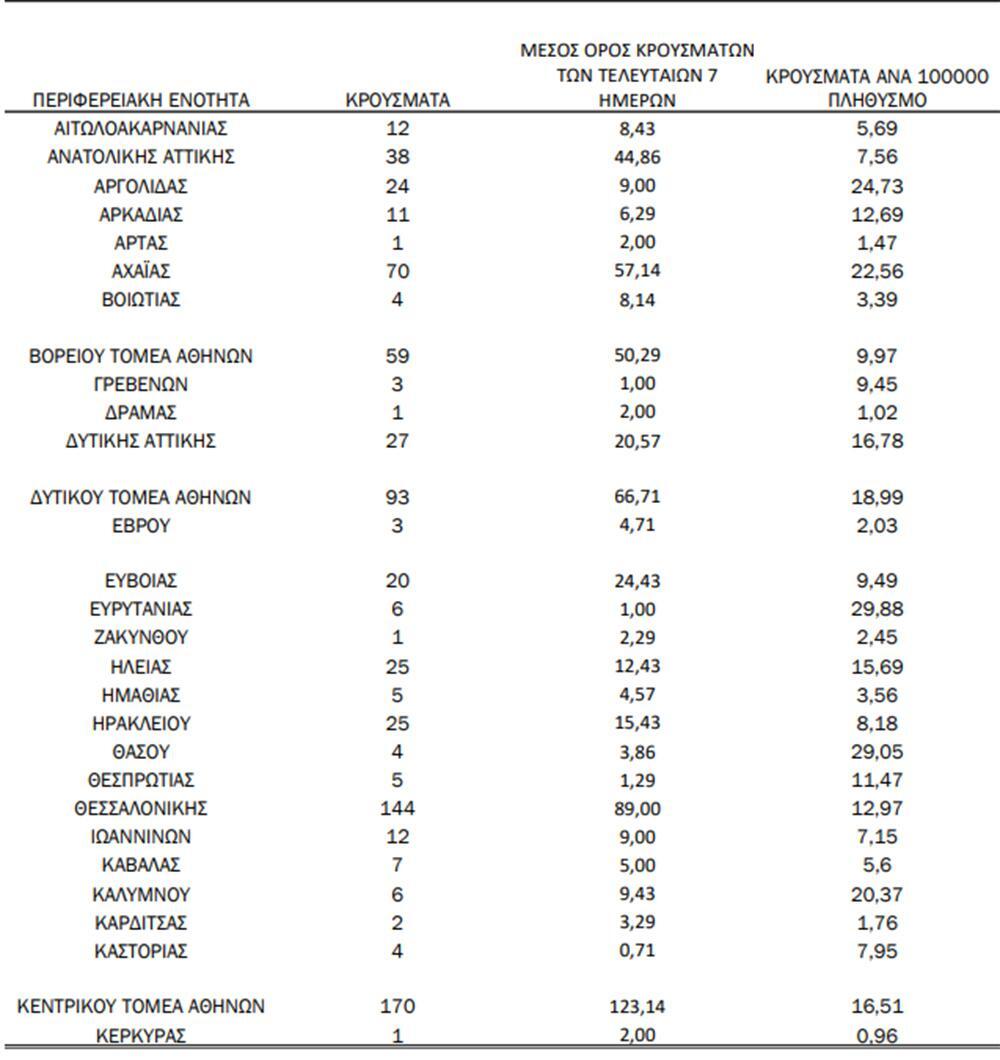Κεντρικός Τομέα Αθηνών: 170 κρούσματα