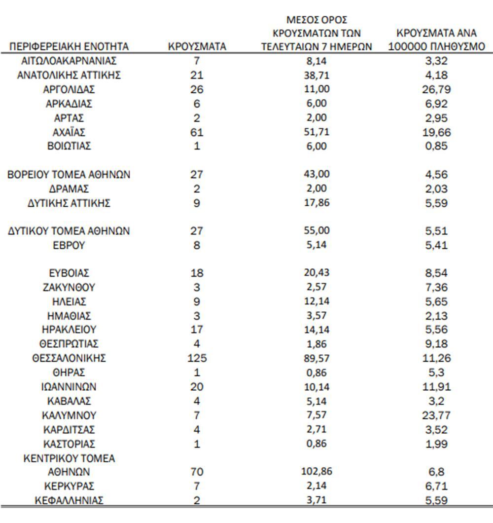 Κεντρικός Τομέα Αθηνών: 70 κρούσματα