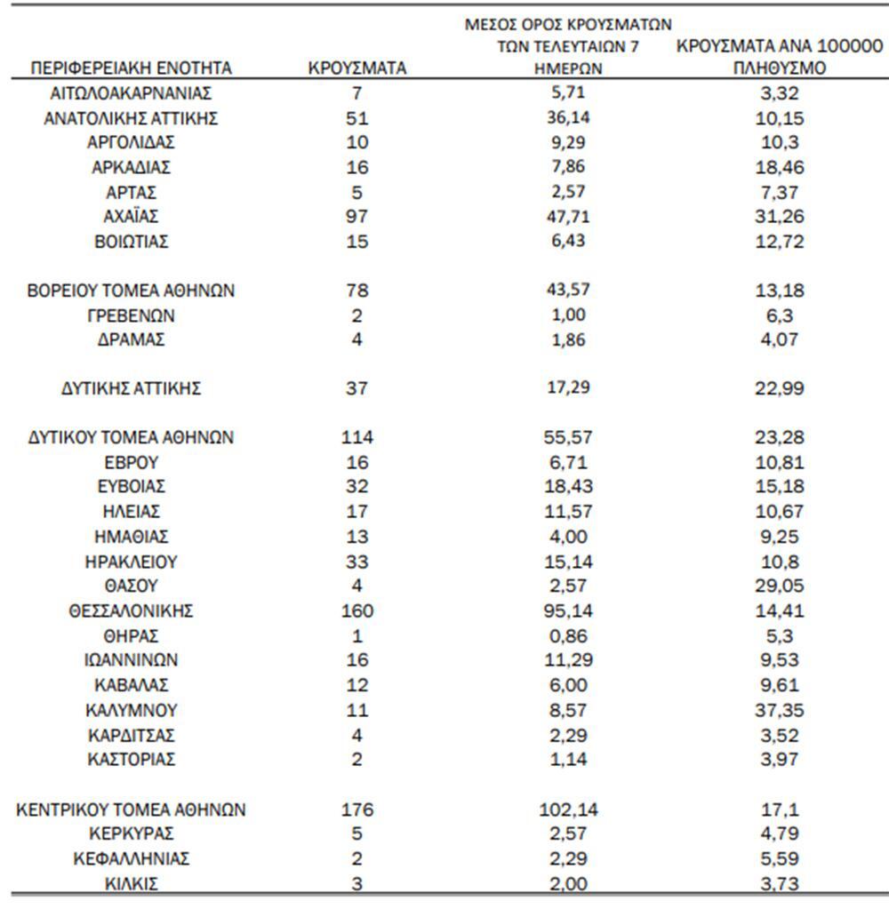 Κεντρικός Τομέα Αθηνών: 176 κρούσματα