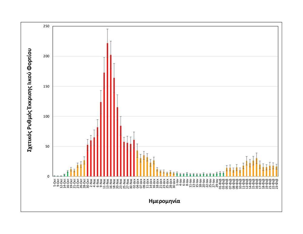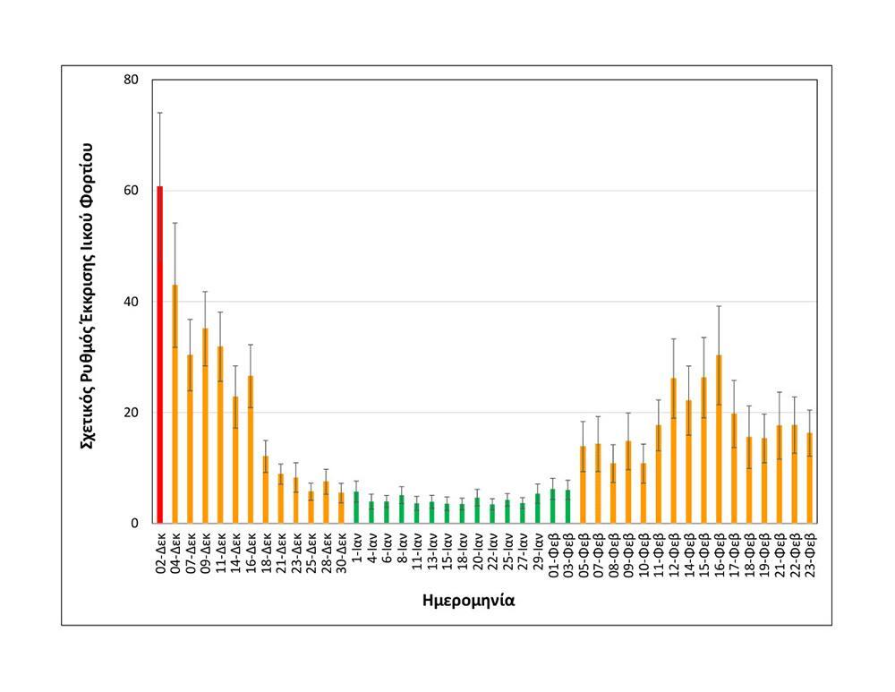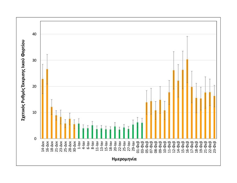 Σύμφωνα με τα νεότερα αποτελέσματα της ομάδας του ΑΠΘ, για τη Δευτέρα 22 και την Τρίτη 23 Φεβρουαρίου, οι εξορθολογισμένες μέσες τιμές σχετικής έκκρισης ιικού φορτίου είναι: