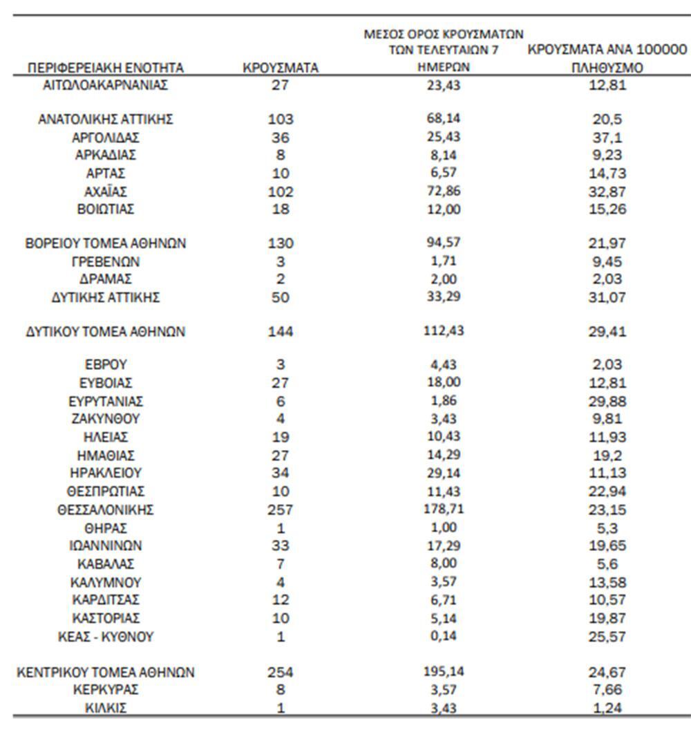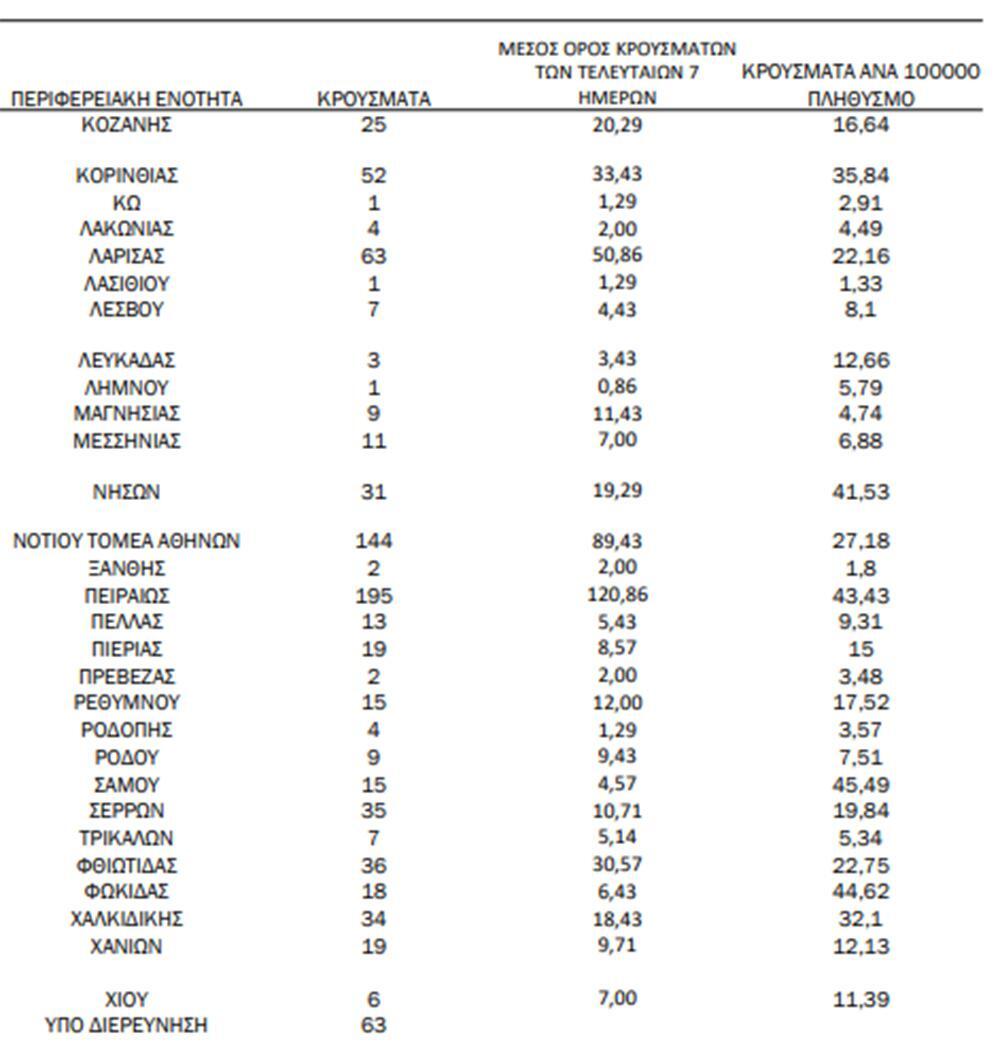 50 κρούσματα στην Π.Ε. Δυτικής Αττικής