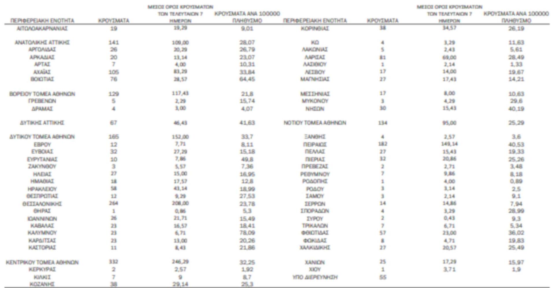 - Κεντρικός Τομέας Αθηνών: 332 κρούσματα