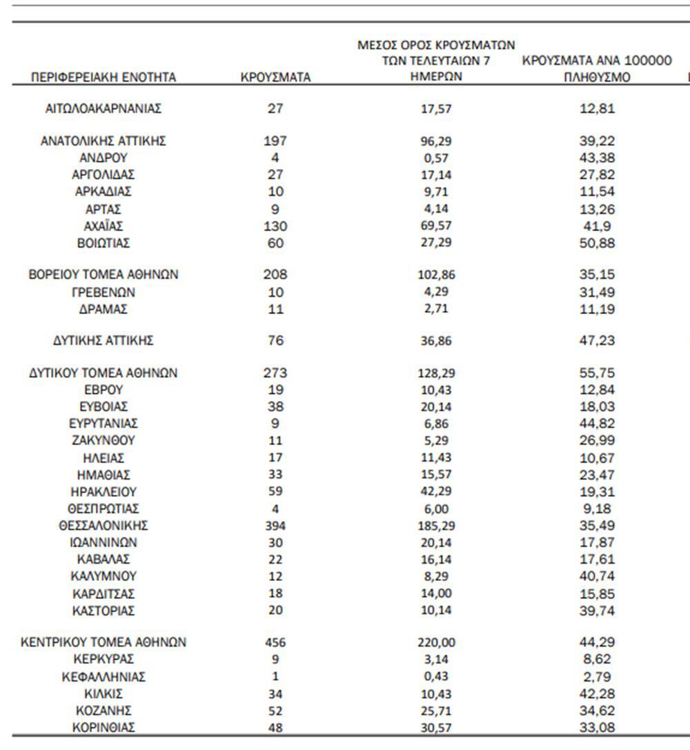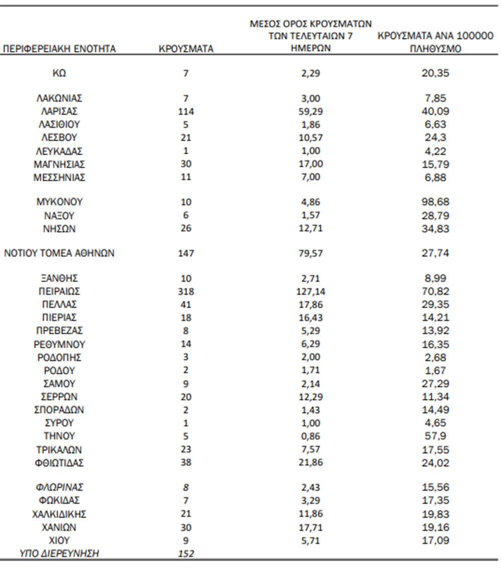 Αναλυτικότερα τα κρούσματα στις περιφερειακές ενότητες που ανήκουν στην Αττική:
