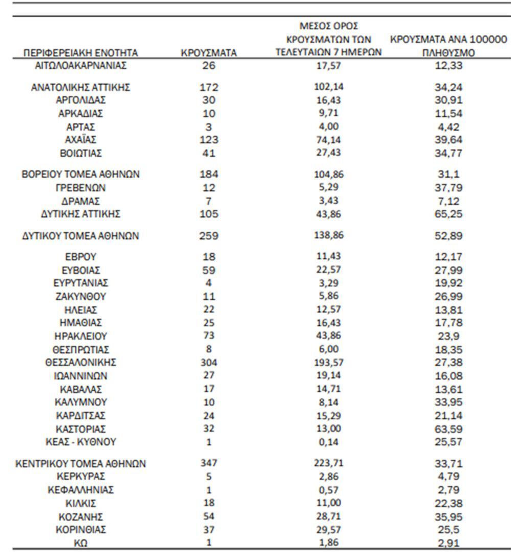 Αναλυτικότερα τα κρούσματα στις περιφερειακές ενότητες που ανήκουν στην Αττική: