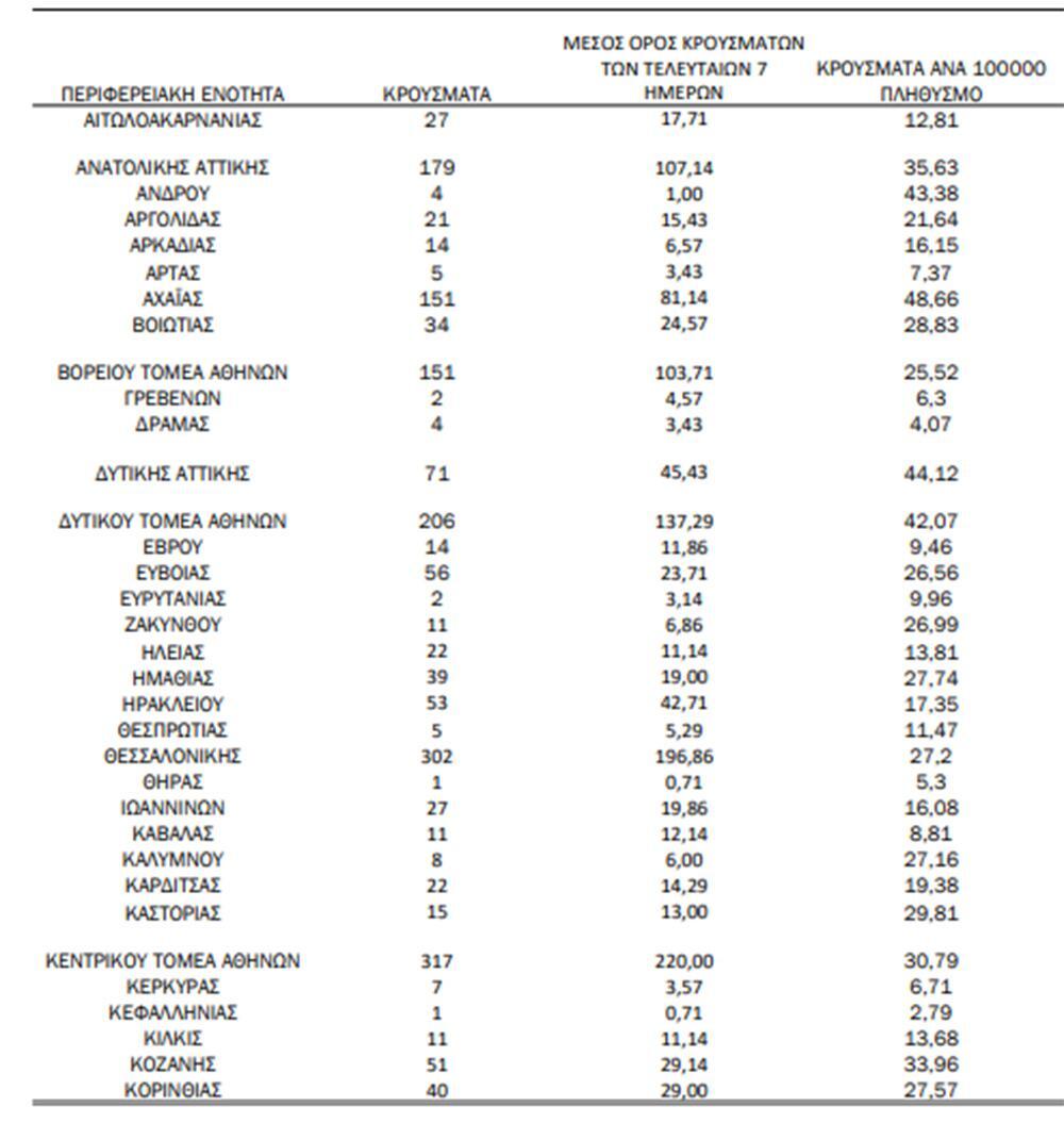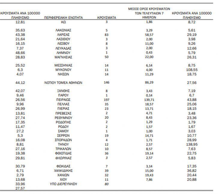 Αναλυτικότερα τα κρούσματα στις περιφερειακές ενότητες που ανήκουν στην Αττική: