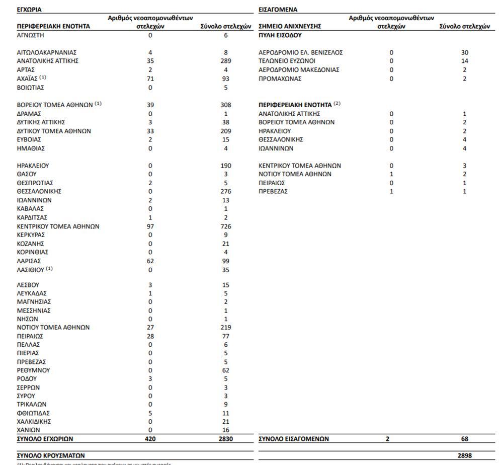 Συνολικά έχουν ταυτοποιηθεί 2.898 θετικά για την παρουσία μετάλλαξης Β.1.1.7/UK lineage (Variant VOC_202012) (Πίνακας 4) και 56 θετικά για την παρουσία μετάλλαξης B.1.351/South Africa (Variant 501.V2) από την έναρξη λειτουργίας του Εθνικού Δικτύου Γονιδιωματικής Επιτήρησης για τις μεταλλάξεις του SARS-CoV-2 έως σήμερα.