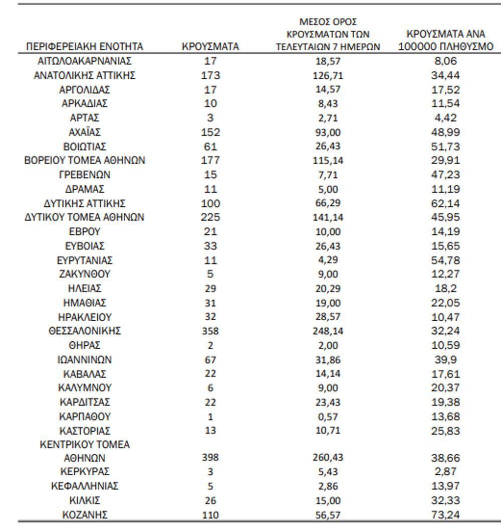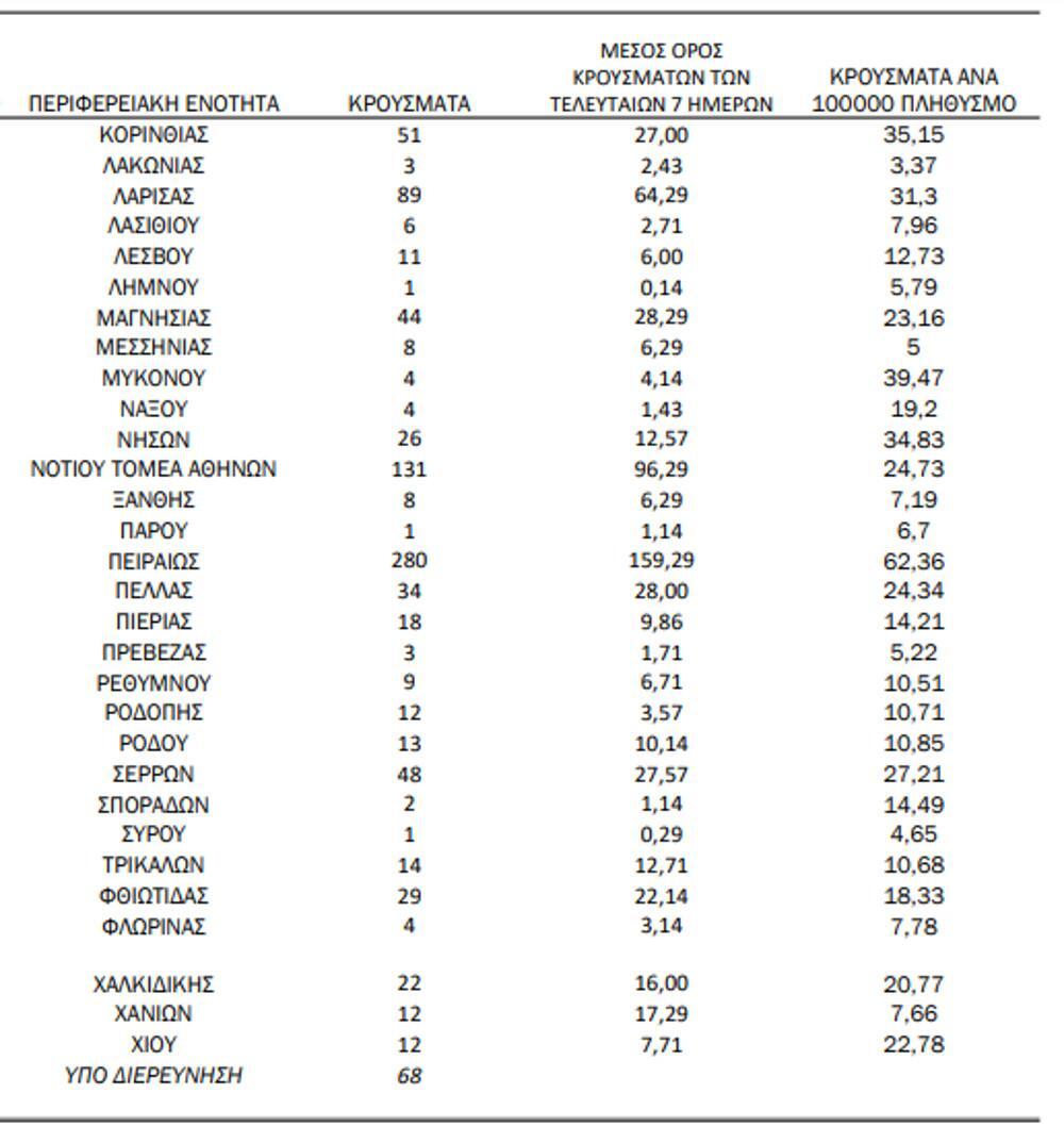 Αναλυτικότερα τα κρούσματα στις περιφερειακές ενότητες που ανήκουν στην Αττική: