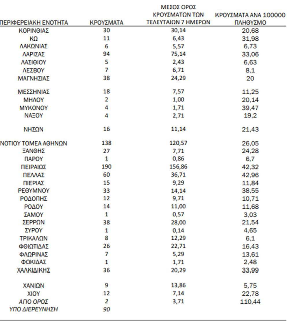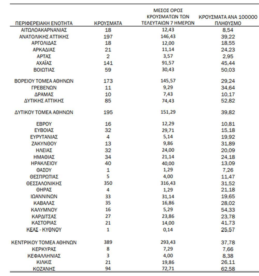 Η κατανομή των κρουσμάτων στην Ελλάδα
