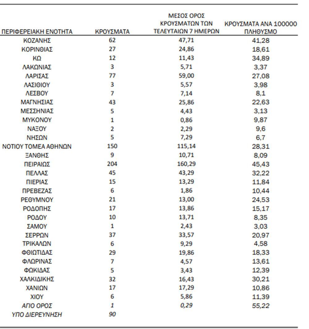 Η ανακοίνωση του ΕΟΔΥ για τα κρούσματα: