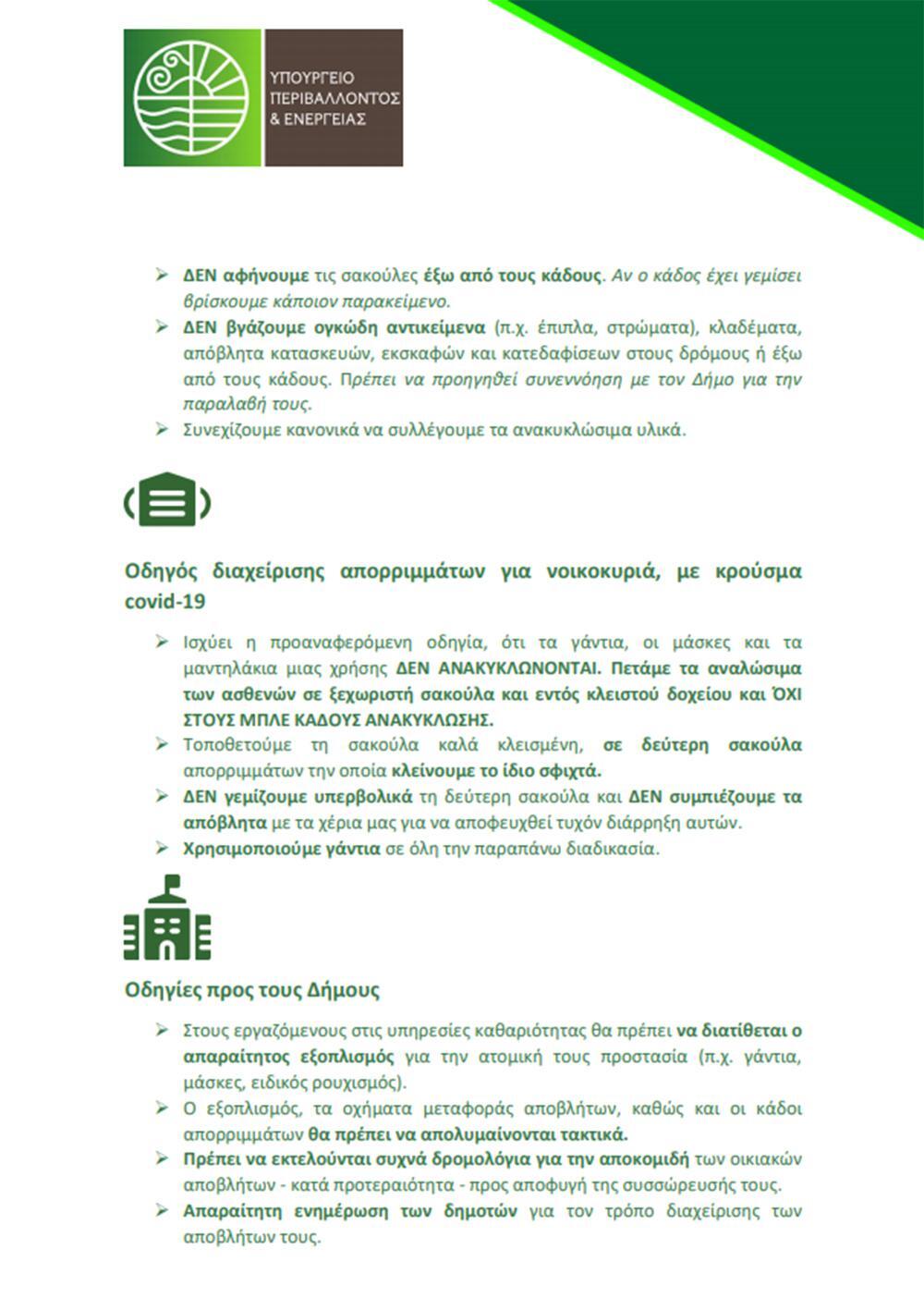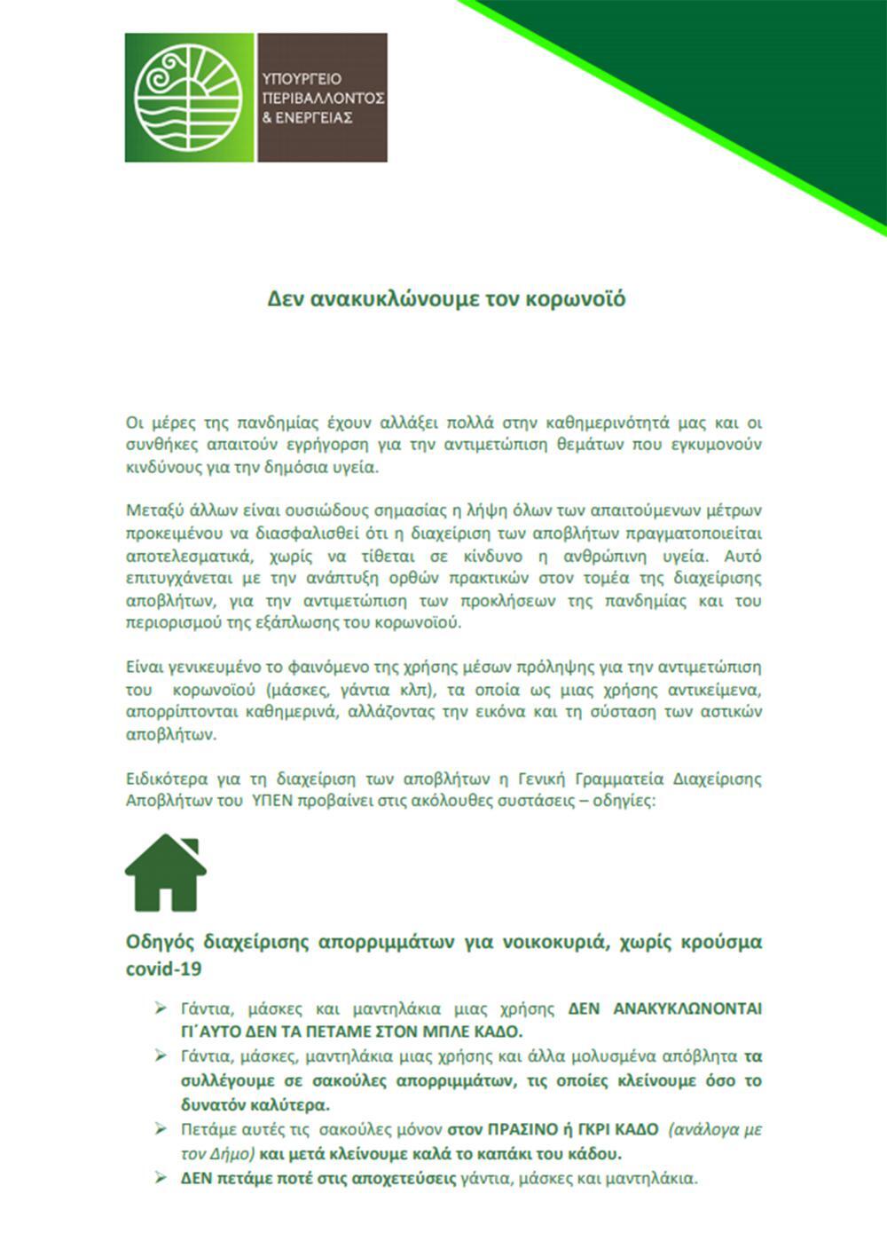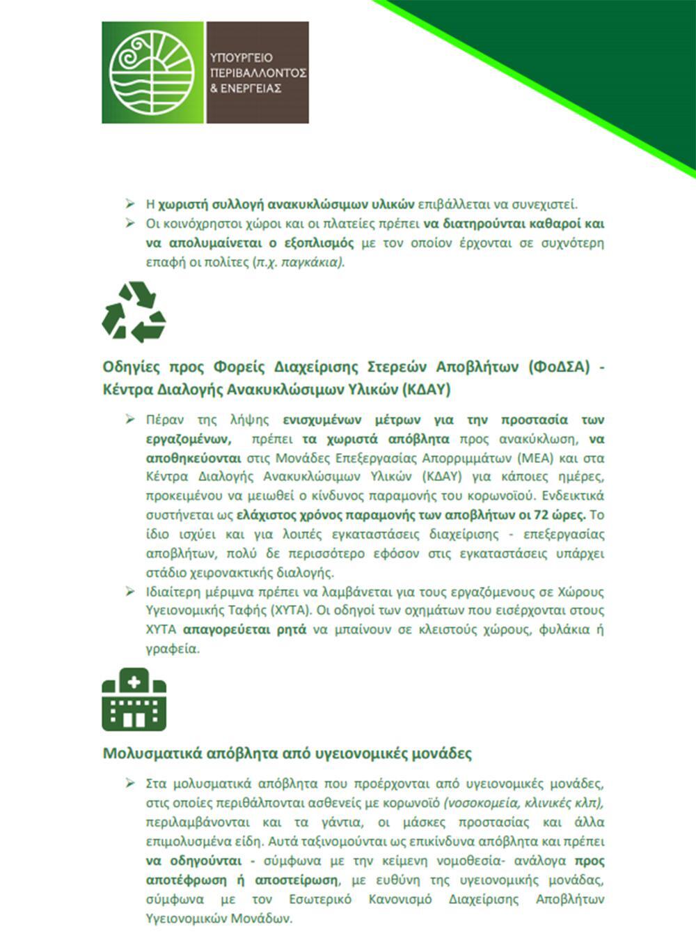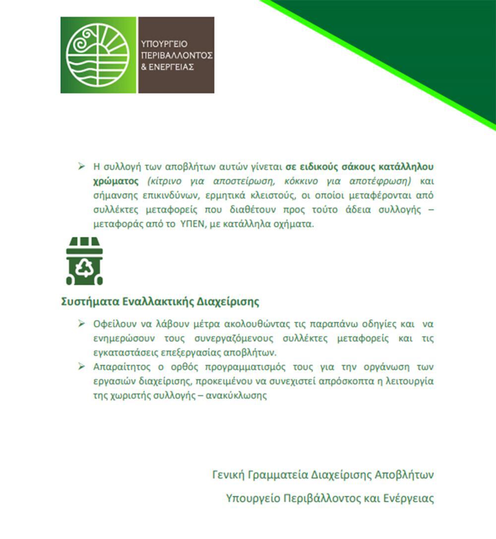 Γενικές οδηγίες για τα απόβλητα κορωνοϊού