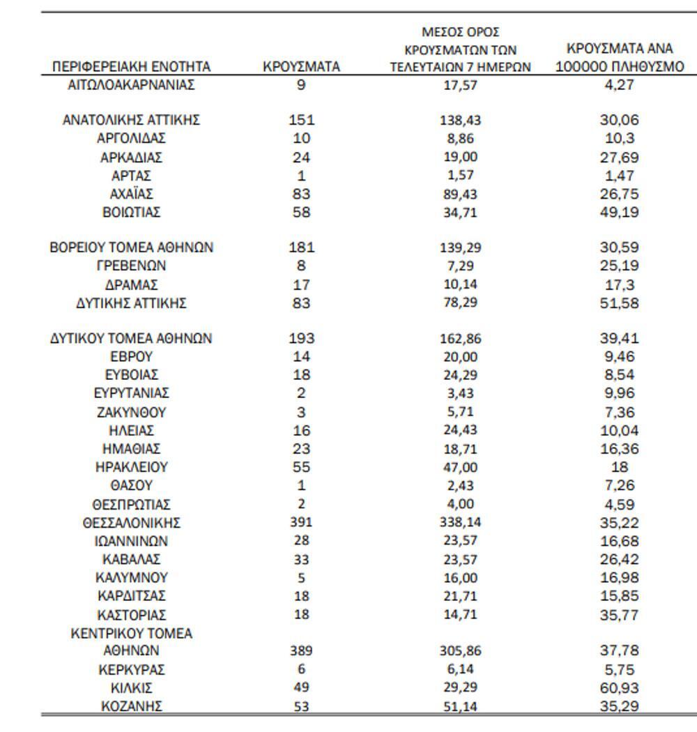 Κεντρικός Τομέας Αθηνών:389 κρούσματα