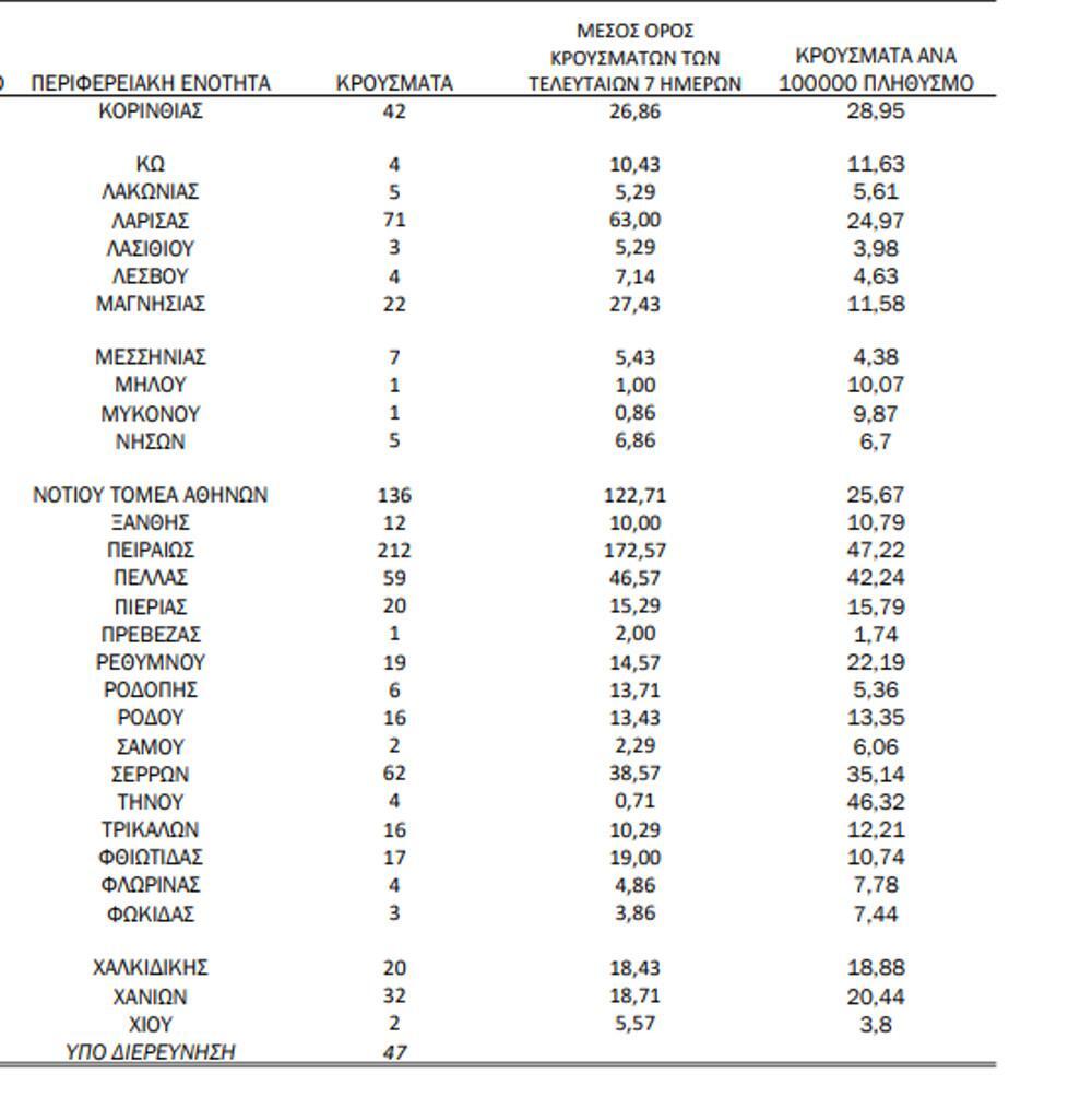 Η ανακοίνωση του ΕΟΔΥ για τα κρούσματα: