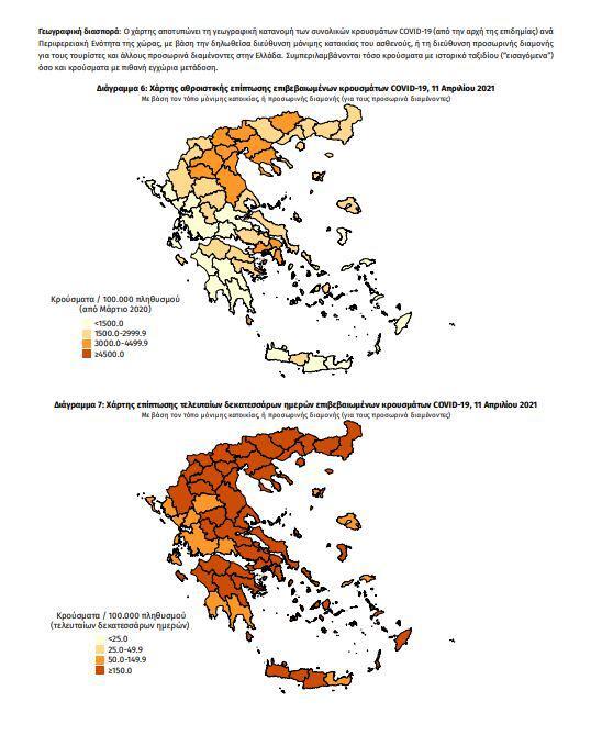 Τα στοιχεία που παρουσιάζονται αφορούν περιστατικά από την επιδημιολογική επιτήρηση της νόσου από το νέο κορωνοϊό (COVID19), με βάση τα δεδομένα που έχουν δηλωθεί στον ΕΟΔΥ και καταγραφεί μέχρι τις 11 Απριλίου 2021 (ώρα 15:00). Τα νέα εργαστηριακά επιβεβαιωμένα κρούσματα της νόσου που καταγράφηκαν τις τελευταίες 24 ώρες είναι 1.718, εκ των οποίων 3 εντοπίστηκαν κατόπιν ελέγχων στις πύλες εισόδου της χώρας. Ο συνολικός αριθμός των κρουσμάτων ανέρχεται σε 295.480