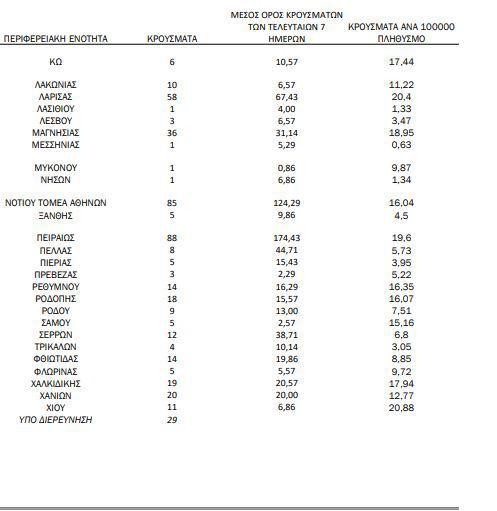 Την ίδια ώρα 186 κρούσματα καταγράφονται στην Θεσσαλονίκη και 57 και 58 σε Αχαία και Λάρισα αντίστοιχα.