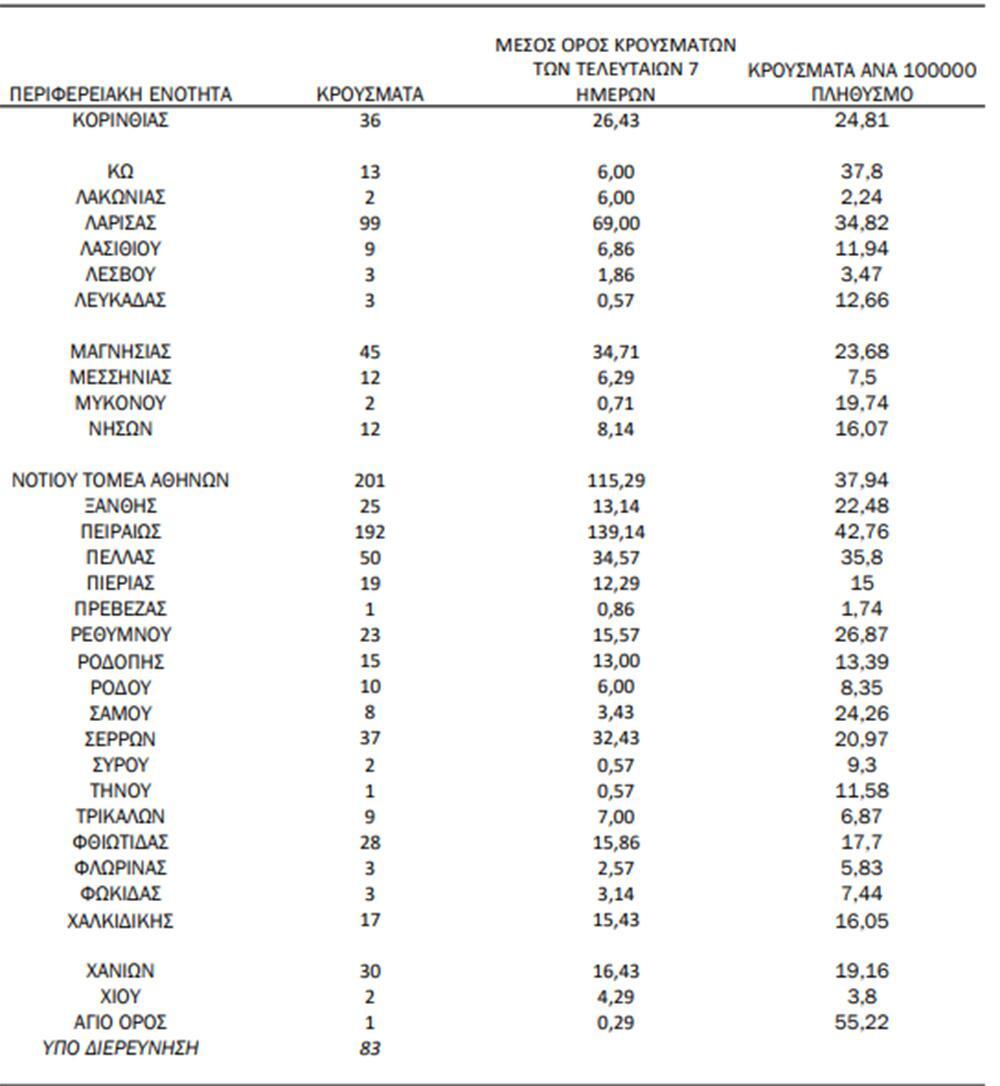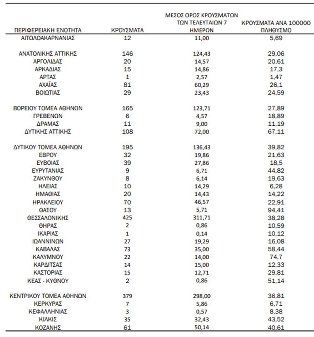 Αναλυτικότερα τα κρούσματα στις περιφερειακές ενότητες που ανήκουν στην Αττική: