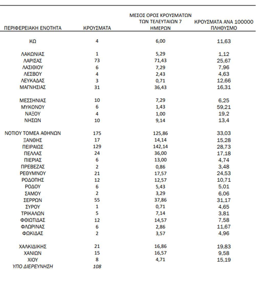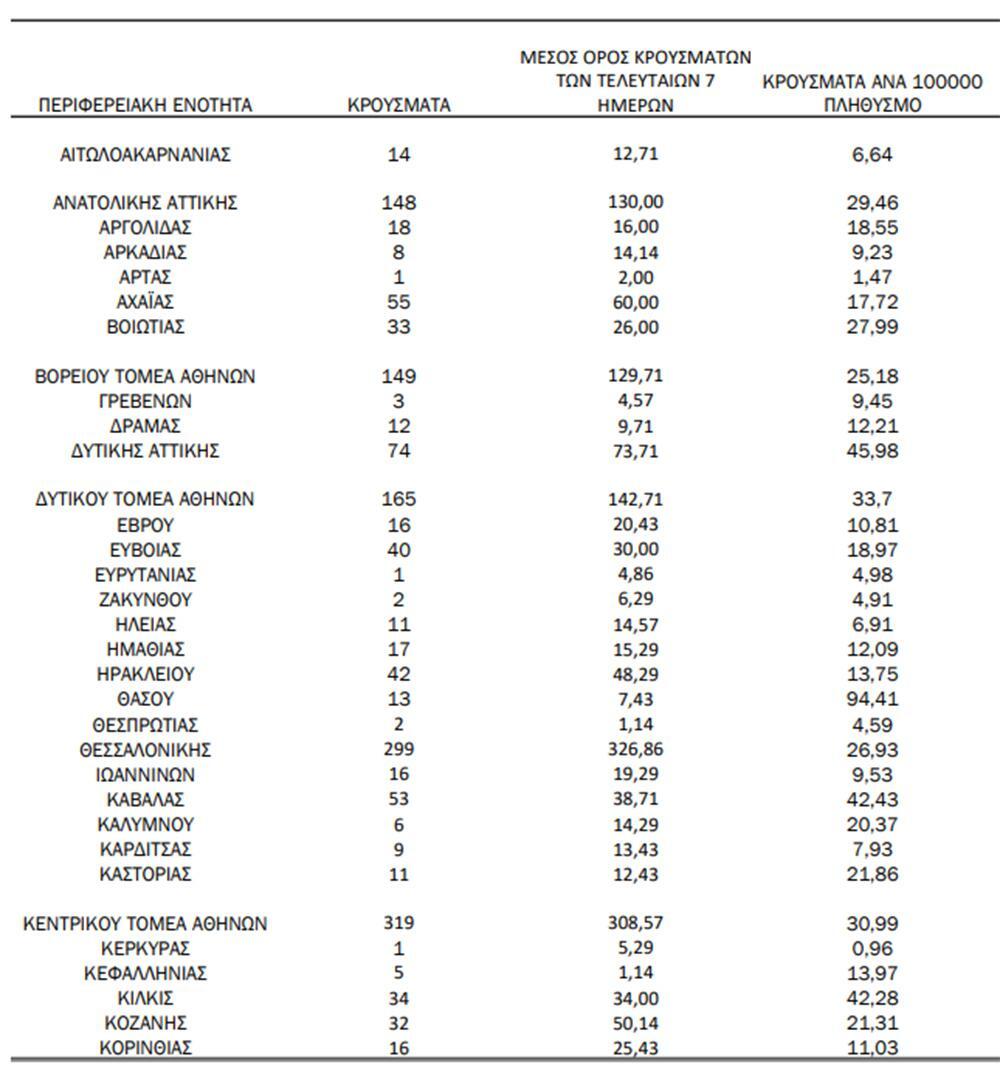 Αναλυτικότερα τα κρούσματα στις περιφερειακές ενότητες που ανήκουν στην Αττική:
