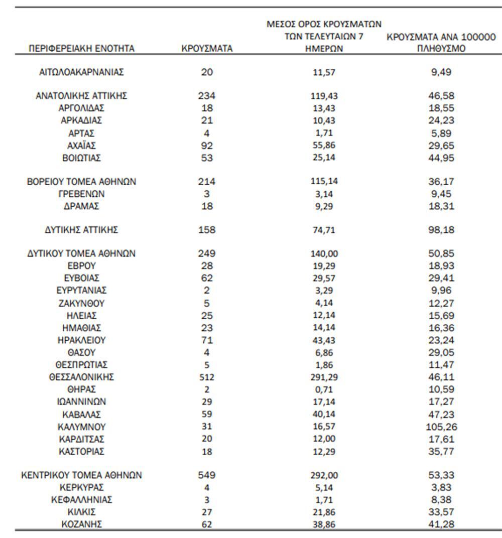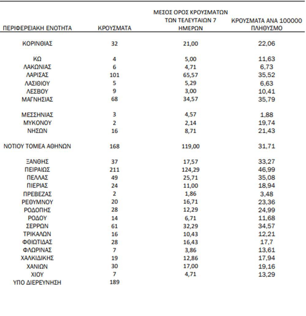 Αναλυτικότερα τα κρούσματα στις περιφερειακές ενότητες που ανήκουν στην Αττική: