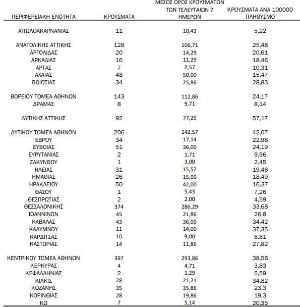 Κεντρικός Τομέα Αθηνών: 397 κρούσματα