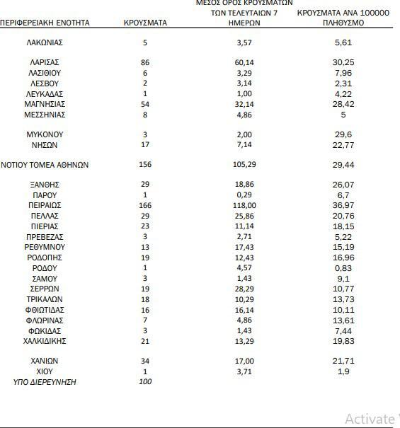Στη Θεσσαλονίκη καταγράφηκαν 374 νέες μολύνσεις και στην Αχαΐα 48 μολύνσεις.