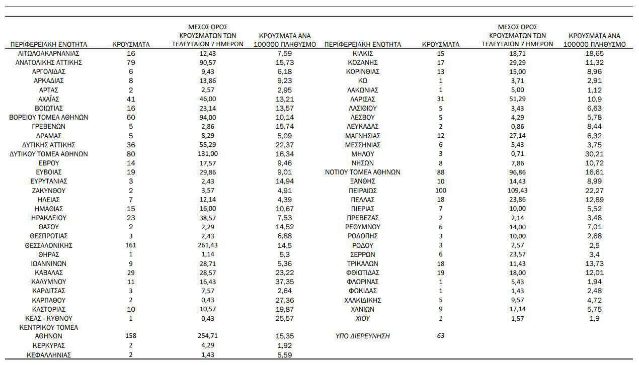 Αναλυτικότερα τα κρούσματα στις περιφερειακές ενότητες που ανήκουν στην Αττική: