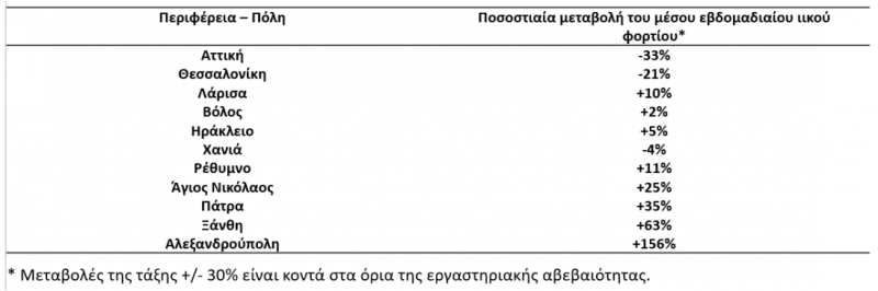 Οι οριακές μεταβολές σημειώνονται στην Θεσσαλονίκη (-21%), στο Ρέθυμνο (+11%) και στον Άγιο Νικόλαο (+25%), ενώ σταθερό παραμένει ουσιαστικά το φορτίο στις πόλεις των Χανίων, του Βόλου, του Ηρακλείου και της Λάρισας, όπου η μεταβολή του ιικού φορτίου στα λύματα κυμαίνεται από -4% έως +10%.