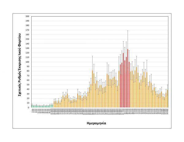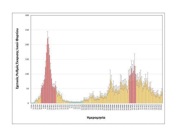 Όπως φαίνεται στα διαγράμματα που παρουσιάζει το ΑΠΕ-ΜΠΕ (επισυνάπτονται) έπειτα από τέσσερις εβδομάδες αποκλιμάκωσης, το ιικό φορτίο ανιχνεύεται στα επίπεδα της τελευταίας εβδομάδας του Απριλίου.