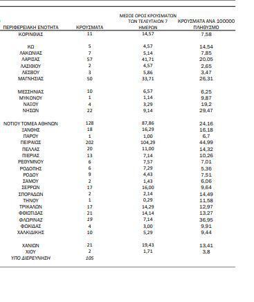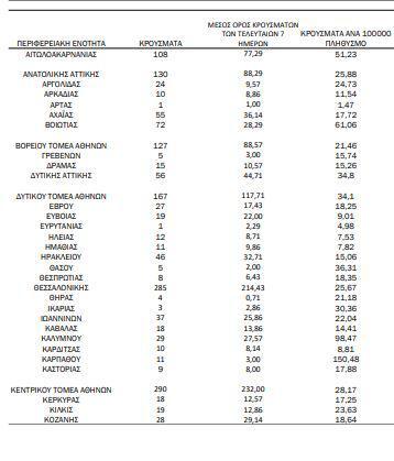 Παράλληλα, ιδιαίτερα υψηλός αριθμός κρουσμάτων εντοπίζεται στη Θεσσαλονίκη με 285, ενώ ακολουθεί η Αιτωλοακαρνανία με 108 Βοιωτία με 72.