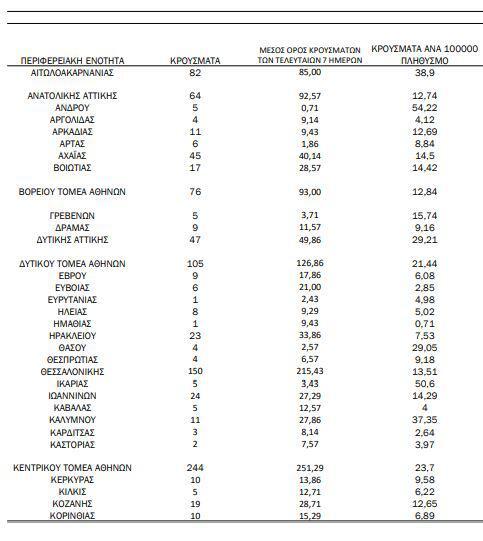 Την ίδια ώρα υψηλός αριθμός κρουσμάτων παρατηρείται στην Θεσσαλονίκη με 150 νέους ασθενείς ενώ 82 κρούσματα καταγράφονται στην Αιτωλοακαρνανία .
