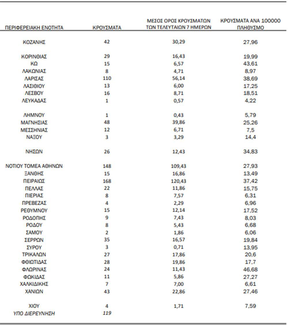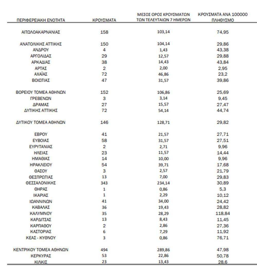 Αναλυτικότερα τα κρούσματα στις περιφερειακές ενότητες που ανήκουν στην Αττική: