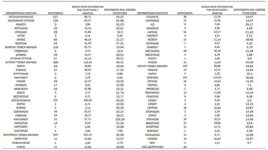 Αναλυτικότερα τα κρούσματα στις περιφερειακές ενότητες που ανήκουν στην Αττική: