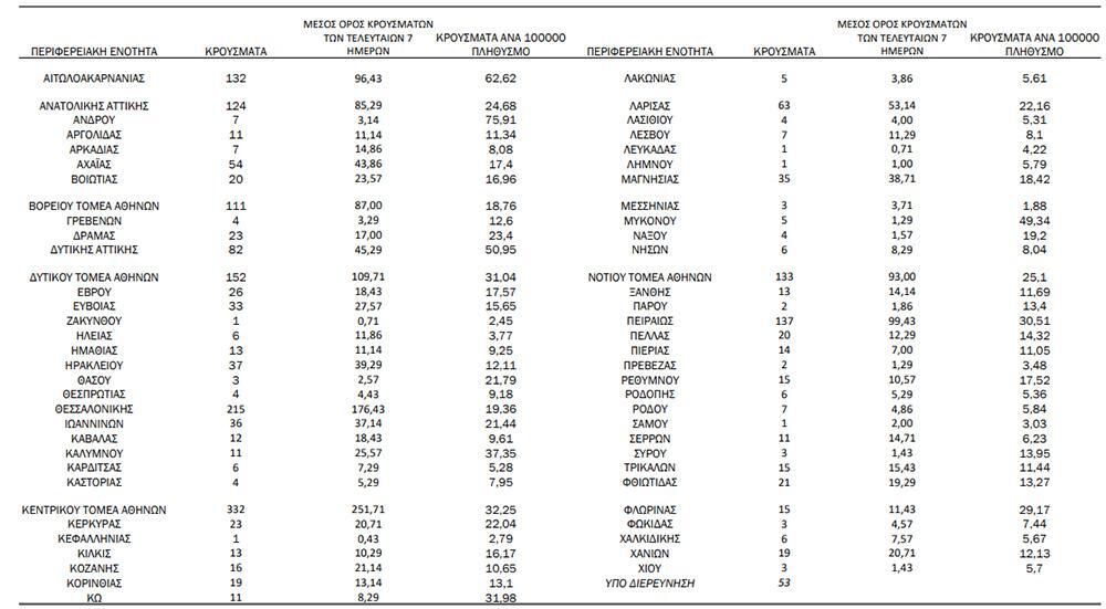 Αναλυτικότερα τα κρούσματα στις περιφερειακές ενότητες που ανήκουν στην Αττική: