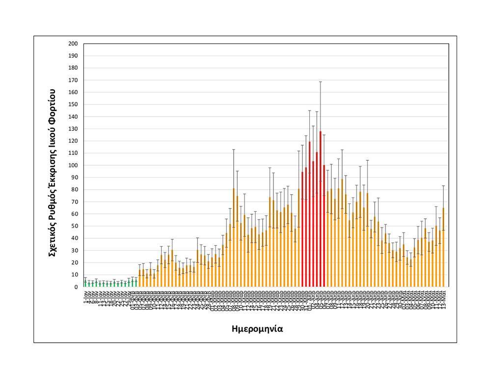 -Αυξημένη κατά 21% σε σχέση με τη μέση τιμή των δύο αμέσως προηγούμενων μετρήσεων της Δευτέρας 10/05 και της Τρίτης 11/05.