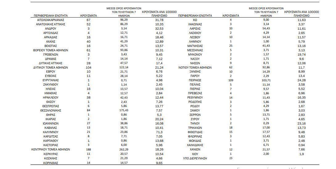 Αναλυτικότερα τα κρούσματα στις περιφερειακές ενότητες που ανήκουν στην Αττική:
