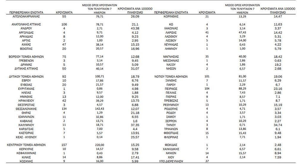 Αναλυτικότερα τα κρούσματα στις περιφερειακές ενότητες που ανήκουν στην Αττική: