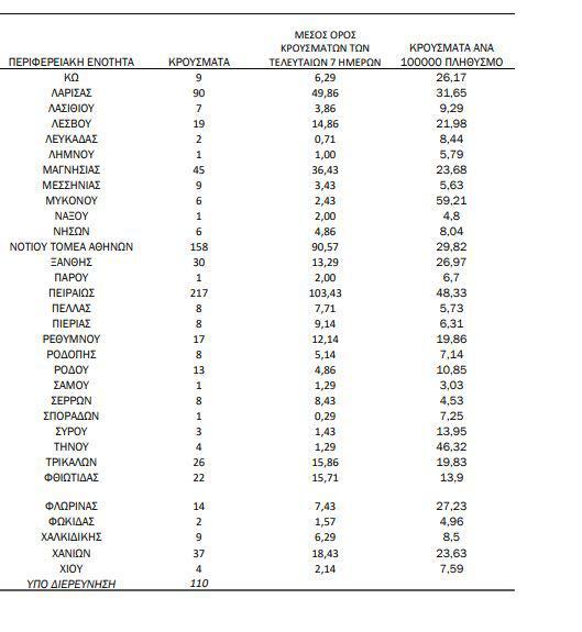 Αναλυτικότερα τα κρούσματα στις περιφερειακές ενότητες που ανήκουν στην Αττική: