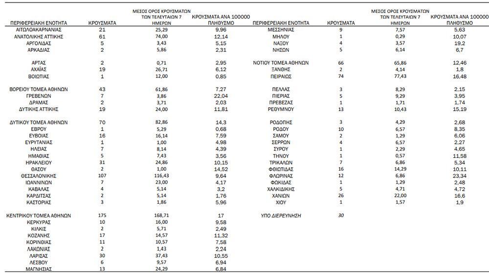 Αναλυτικότερα τα κρούσματα στις περιφερειακές ενότητες που ανήκουν στην Αττική: