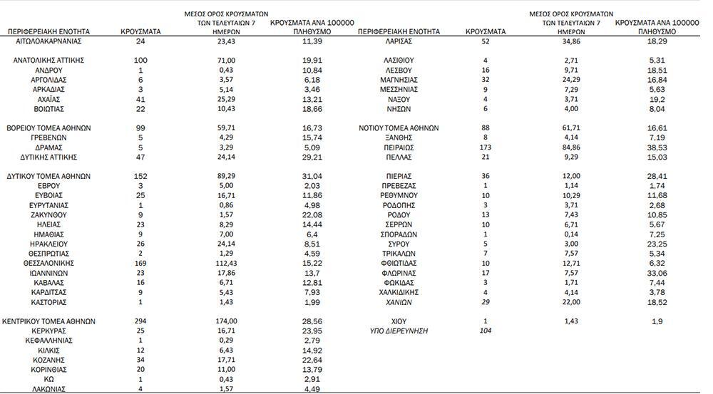 Αναλυτικότερα τα κρούσματα στις περιφερειακές ενότητες που ανήκουν στην Αττική: