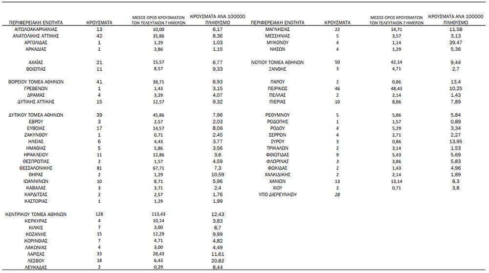 Αναλυτικότερα τα κρούσματα στις περιφερειακές ενότητες που ανήκουν στην Αττική: