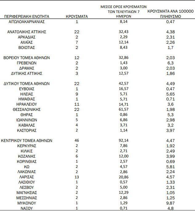 Αναλυτικότερα τα κρούσματα στις περιφερειακές ενότητες που ανήκουν στην Αττική: