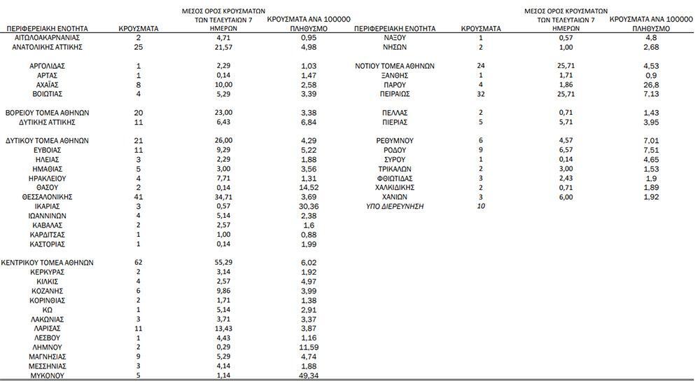- Κεντρικός Τομέας Αθηνών: 62 κρούσματα
