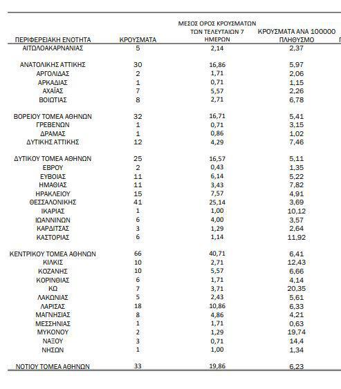 Αναλυτικότερα τα κρούσματα στις περιφερειακές ενότητες που ανήκουν στην Αττική: