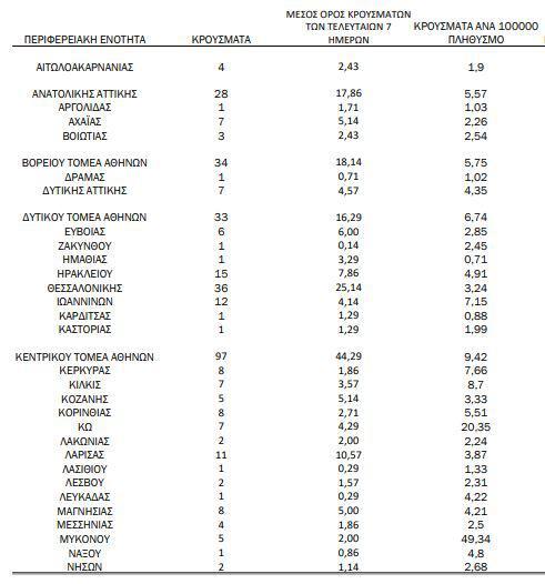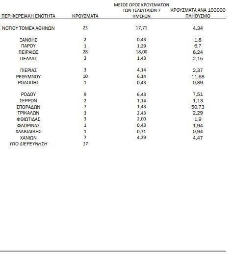 Αναλυτικότερα τα κρούσματα στις περιφερειακές ενότητες που ανήκουν στην Αττική: