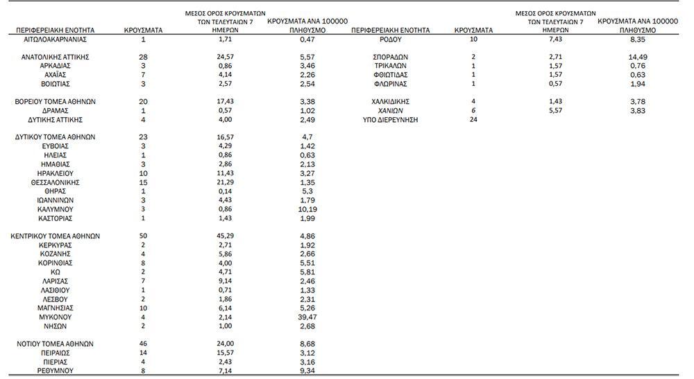 Αναλυτικότερα τα κρούσματα στις περιφερειακές ενότητες που ανήκουν στην Αττική: