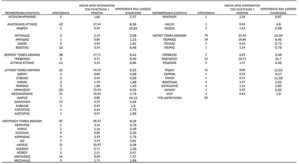 Αναλυτικότερα τα κρούσματα στις περιφερειακές ενότητες που ανήκουν στην Αττική: