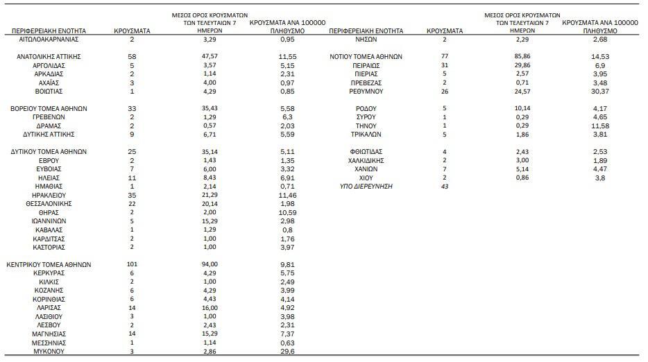 Αναλυτικότερα τα κρούσματα στις περιφερειακές ενότητες που ανήκουν στην Αττική: