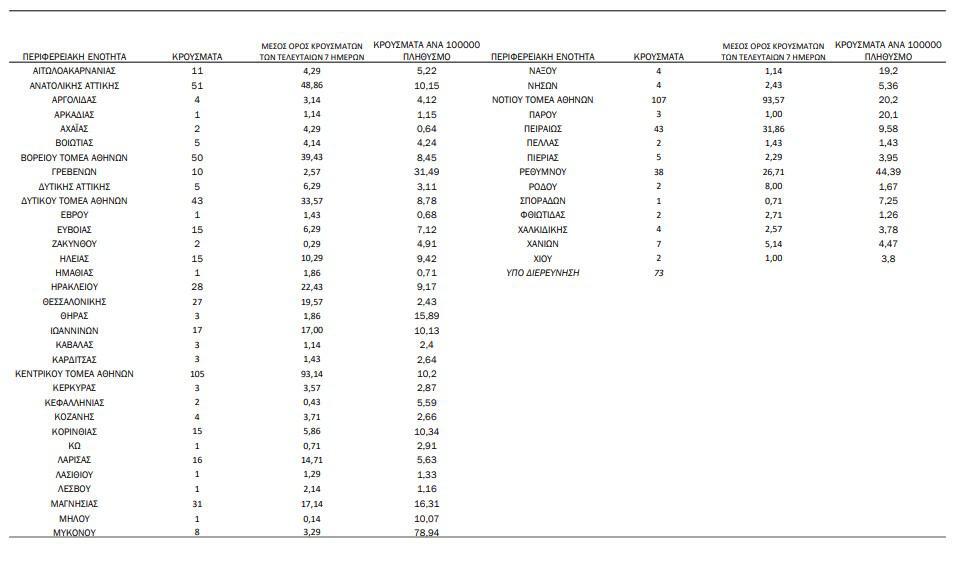 Αναλυτικότερα τα κρούσματα στις περιφερειακές ενότητες που ανήκουν στην Αττική: